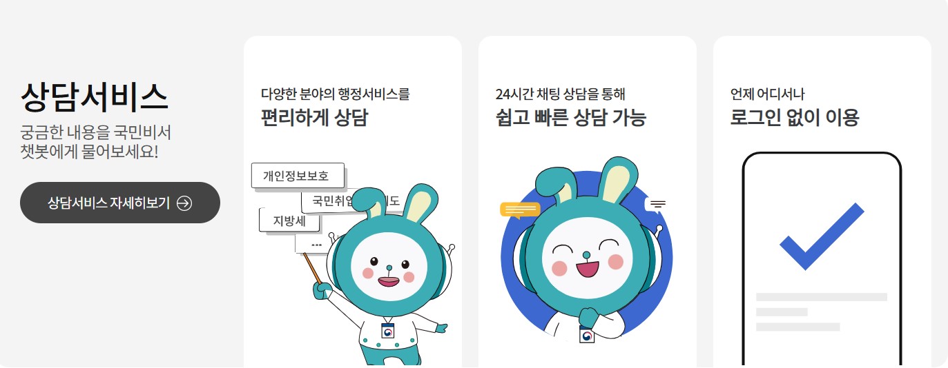 각종 행정 절차나 필요한 서류, 신청 방법 등에 대한 궁금증을 실시간으로 해소할 수 있어 매우 유용합니다.