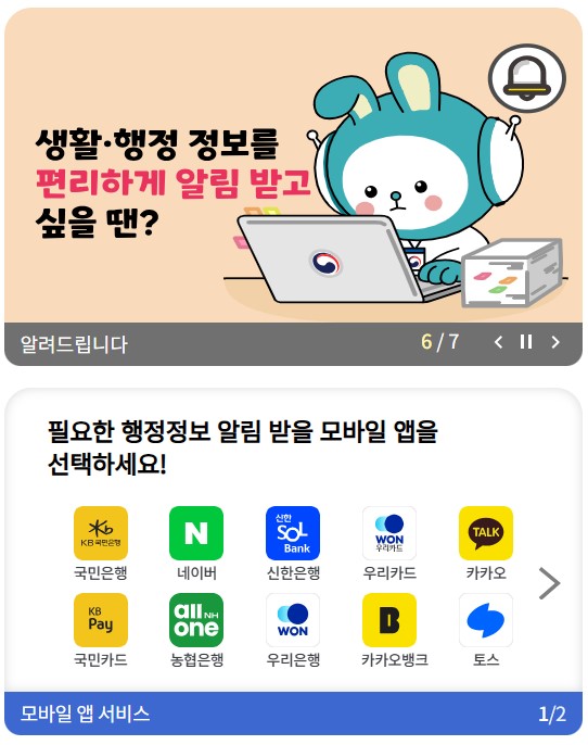내가 놓치고 있던 소중한 알림, 단 한 번의 설정으로 받아볼 수 있는 국민비서 서비스를 지금 확인해보세요.