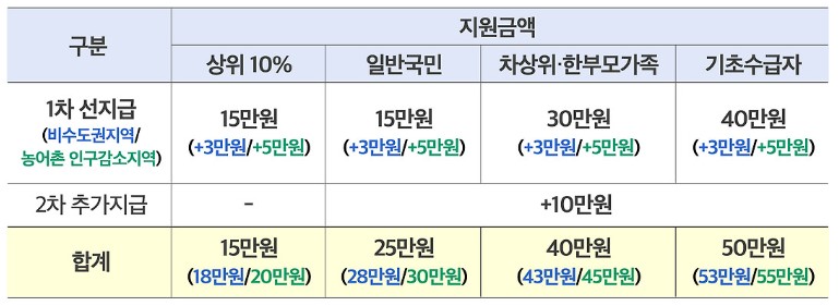 - 차상위계층. 한부모 가정. 기초 생활 수급자는 두텁게 지급예정.